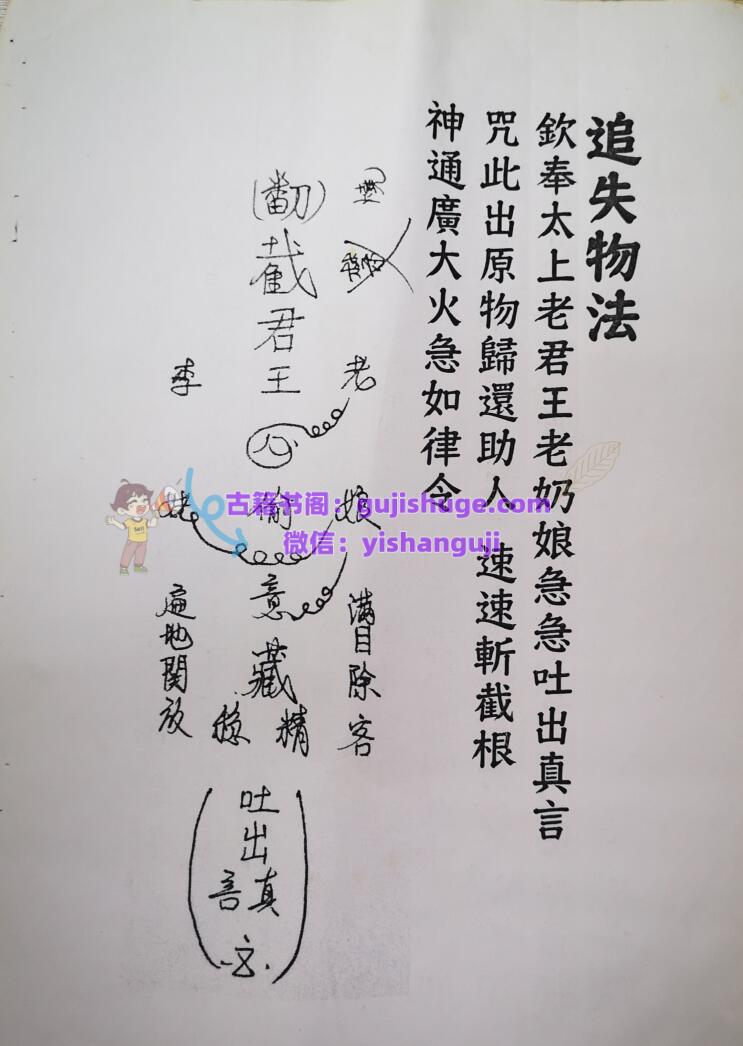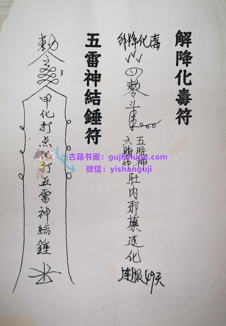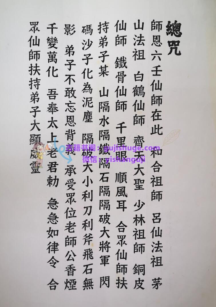 简介:《莫家法府法术》民间秘法相关书籍。内容包含:解降化毒符,五雷神结锤符,总咒,追失物法,小阴箭,大阴箭,闭打,烧关节痛,法脉流行,玉帝护身符,五雷化煞符,反打,打邪,点打,点限打,打鬼,急救止痛止伤,恨打,止血止痛消肿封字令,化骨水,千斤锤,万手争,打筷寄命法,天鹅部斗,老君仙师教,五指山,神打,五雷掌,限打,破法,风罗诀,小儿夜啼用字,打鬼驱邪,金童玉女教,治病灵符,散痛止痛枯疮,七封五雷令,治癫破法,追魂以存六甲用,封枪避弹,赶字鬼,封针,破法开禁,催生符,启师水碗符,寄命,化符在水面食,封刀,放点放记,安胎符,童人开光法,送师咒,显功夫咒,土地咒,三十六道金玉符。