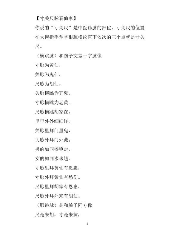 东北大神-《大神摸脉金口诀》.pdf,33页,摸脉原版。大神的摸脉,不但可以看病,还能看一些邪物,所谓的仙缘,也能断一些相关信息,也有部分解梦内容。