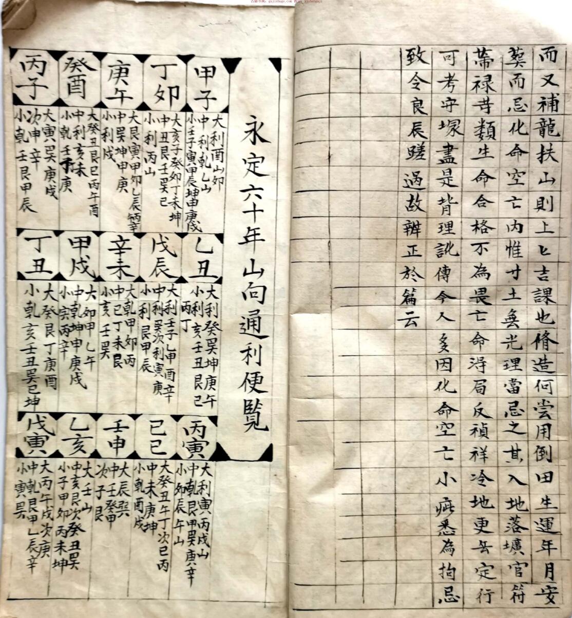 永定六十年山向通利便览,三元白定局图,24山造葬日诀,月家吉凶神,穿音山命,造命课格,监造吉宿日家造用,断折水吉凶,贵人歌……………………………….