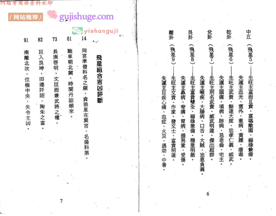飞星组合吉凶评断