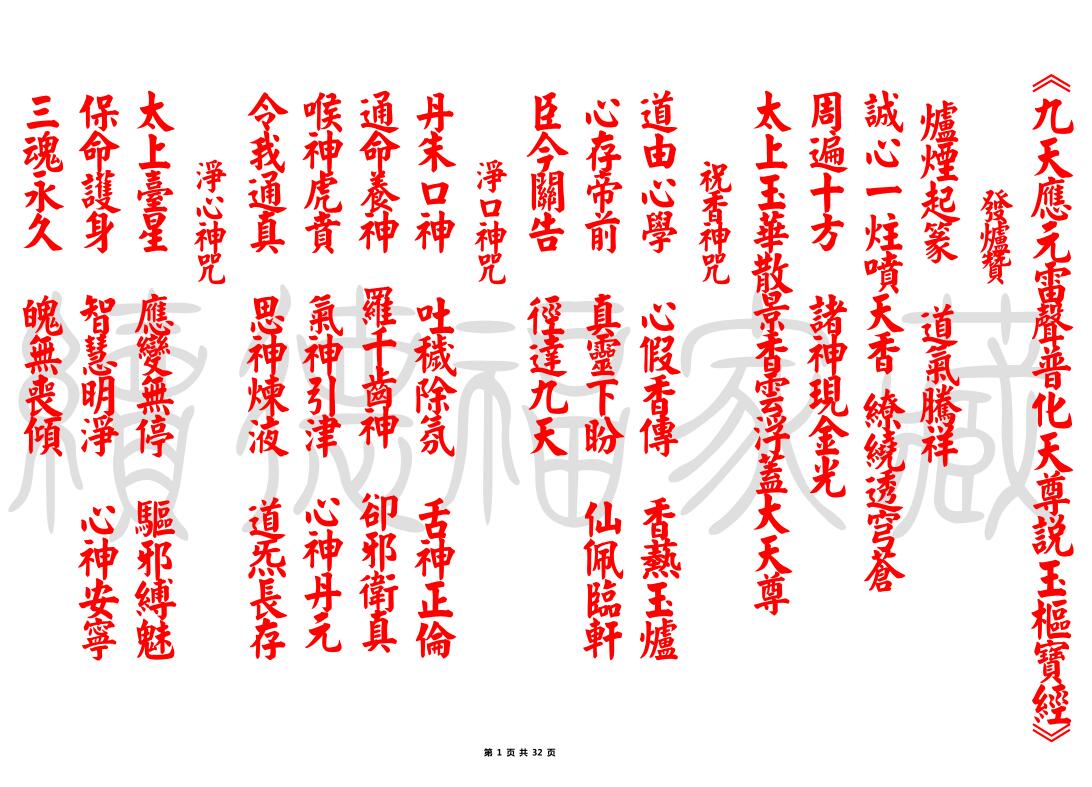 古籍书阁 » (福编)《九天应元雷声普化天尊玉枢宝经+忏》(红字-水印版)