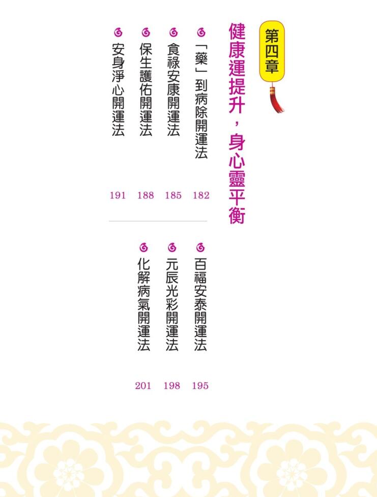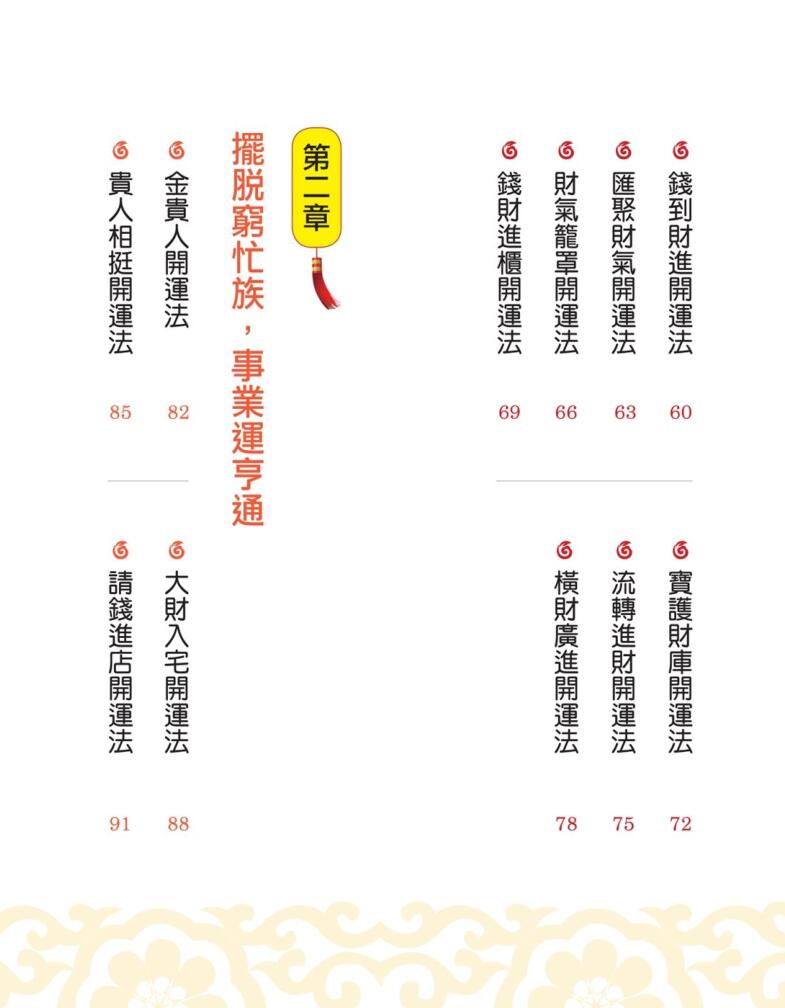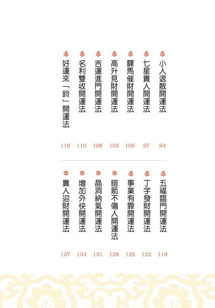 内容: 钱母生财开运法、贵人相挺开运法、大财入宅开运法、求子好运开运法、桃花朵朵开运法、夫妻和合开运法、安身净心开运法、化解病疾开运法、消除厄煞开运法、百子添丁开运法、月老祈福开运法、求子好孕开运法、召唤爱情开运法、百福安泰开运法、药到病除开运法、状告小人开运法、岁岁平安开运法、名利双收开运法、增加外快开运法、逆转胜利开运法、横财广进开运法、财气笼罩开运法、吉运进门开运法、七星贵人开运法、五行除穢开运法、避邪祛穢开运法……