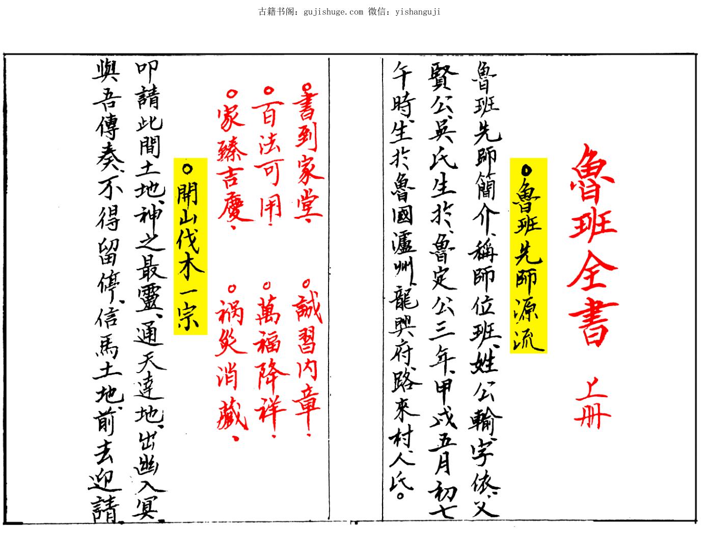 内容:鲁班源流,开山伐木,立造杂山,上梁秘语,喜开财门,论修造起符法,鲁班尺,依造门楼,金光神咒,赞樑,上梁抛喜。。。