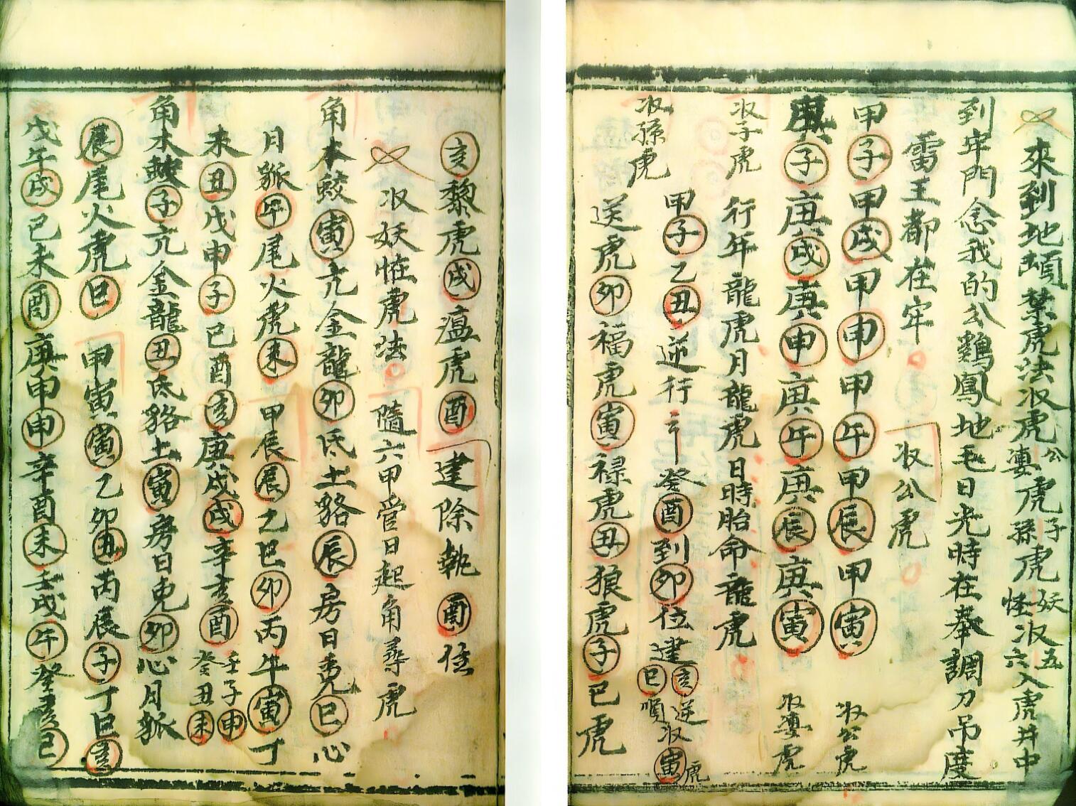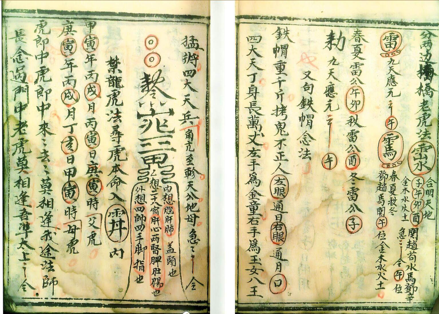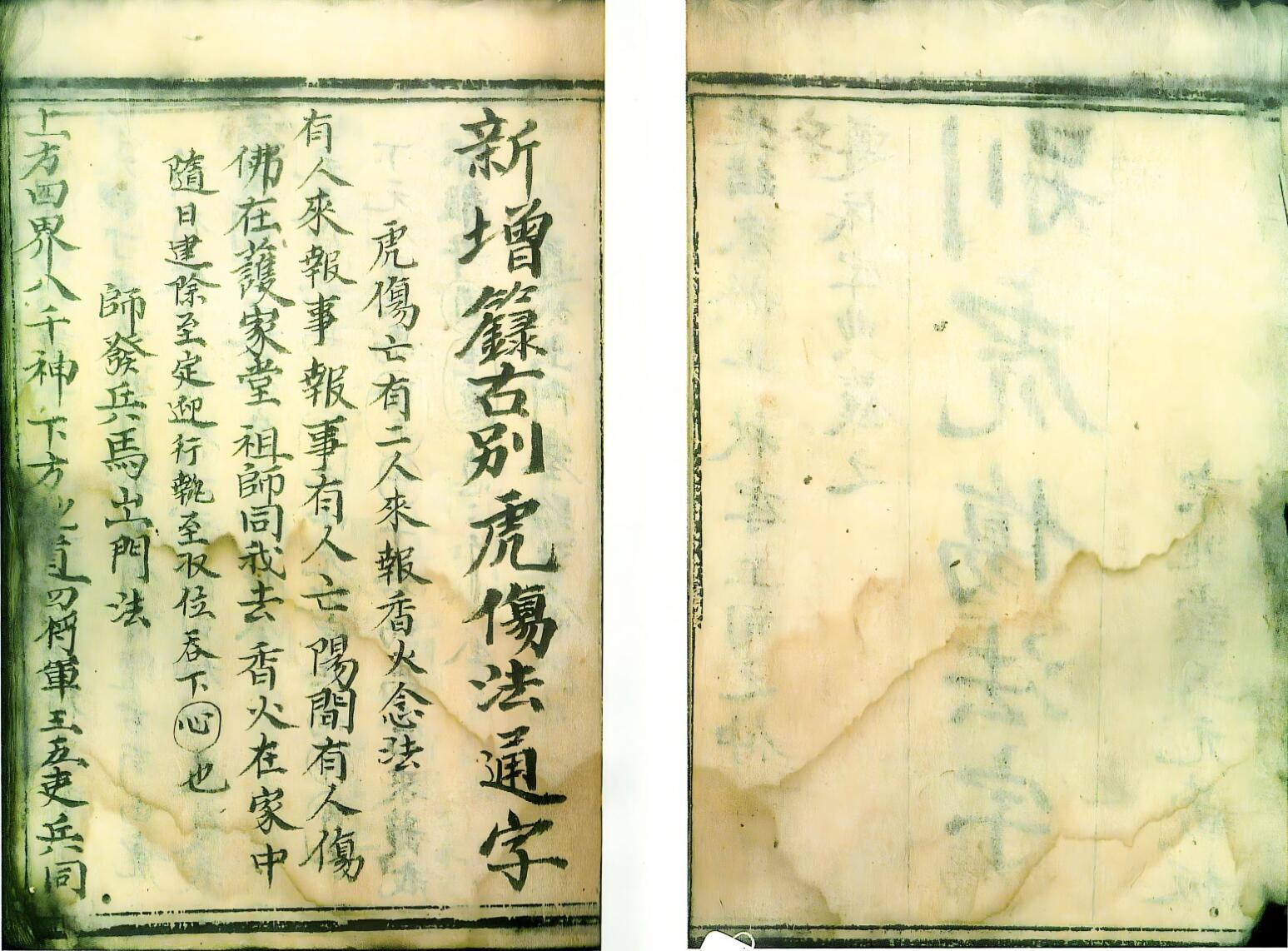 《别虎伤法字》37个筒子页。人过世之后的一些法念,其中有道公出门塞路法念,铁帽法念,禁龙虎法寻虎本命入什么内(里面包含时间)包含大事安排目录。念油下锅法,放鸡过油法,北三切乞迷桃法念,又禁龙虎法,后面有22个符包含孝子符,牢门符,禁虎符,护坛符等