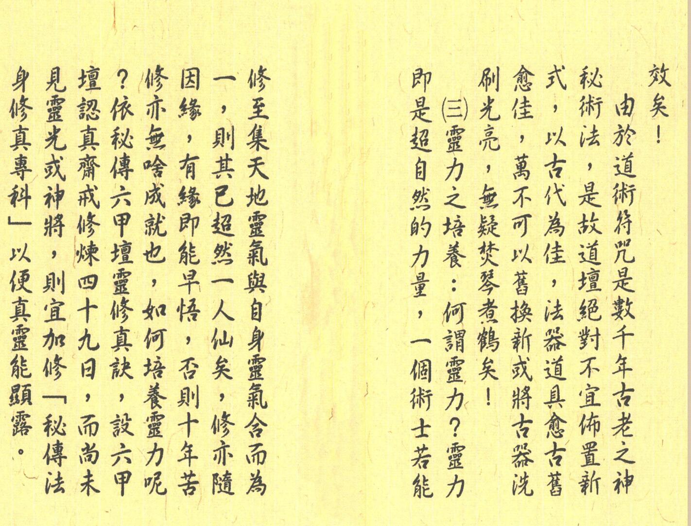 内容: 真传茅山畵灵符秘法全科、畵灵符之秘诀、勅纸咒、勅筆咒、勅水咒、畵符之经验、秘传六甲壇灵修真诀、净口咒、净身咒、安土地咒、净天地咒、混元咒、六丁符、六甲符、太上感应神仙修真秘术、中国神术全科、保身符等。