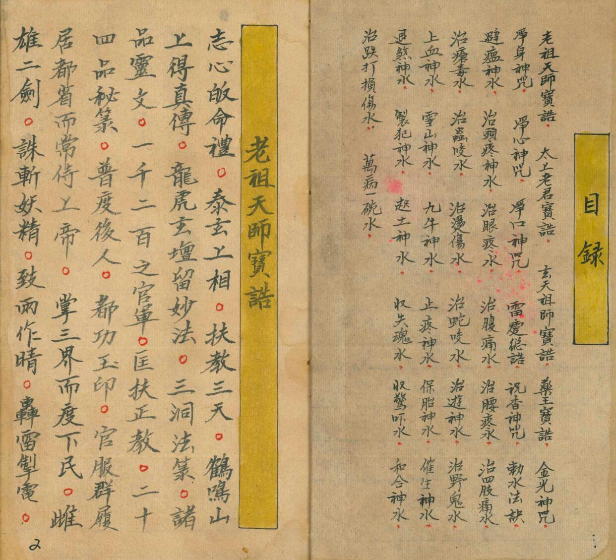 🆕简介:《万病一碗水》民国道医老师傅手抄本,内容包含:天师宝诰老君 玄天 药王宝诰 雷𩃀总浩 净身神咒 金光 净心 净口 祝香神咒 勅水法诀 总共有26种化水法。