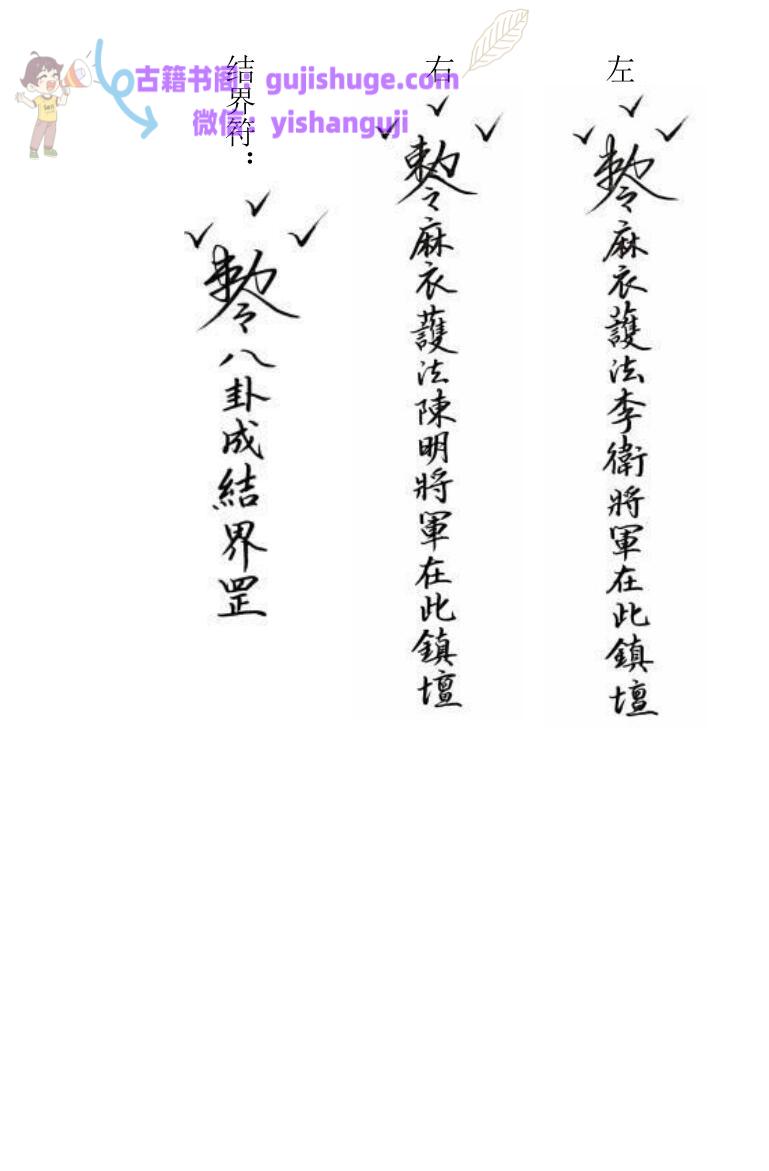 🆕简介:《麻衣教整人破风水驱邪阵法》民间秘法相关书籍,内容包含:1.请师总咒2.增法咒3.水碗圆光(修炼四十九天可在水碗中看见图像)4.雪山令(退烧退热用)5.水神法(惩恶用)6.公鸡啼鸣法(整人每夜梦中被鸡鸣声吵醒)7.九龙化骨(化异物卡喉)8.刀剑神伤法(惩恶用,类似放阴箭)9.三昧真火法(斗法驱邪惩恶用)10.捆仙索(捆邪用)11.雪山掌(伤人五脏寒气入体气血不通,七日不解 绝症而亡)12.飞针伤人杀鬼术(中术者每日莫名感觉针刺,久而久之全身刺痛)13.拘魂法(拘生魂下邪法)14.止血法15.八卦藏魂法(斗法驱邪前用)16.解藏魂17.大海水(斗法用,收一切邪法)18.聚阳水(提升阳气功力)19.丹砂山(敕朱砂杀鬼用)20.雄黄山(敕雄黄)21.香灰山(敕香灰困邪)22.沙土咒(敕泥土砂石压鬼邪生魂)23.放阴箭法24.招财阵法25.大药破邪法(解邪术破附体)26.五雷符27.金刚指(惩恶用)28.驱邪符29.五路财神符30.观音水31.驱邪掌32.收惊符33.五指山(压邪妖鬼怪,阳人生魂)34.欢喜和合符35.六字真言贴36.金刚镇符37.藏魂法,解藏魂38.又八卦藏魂39.防阴箭阴矛盾法40.五行指(取五脏之气打人伤鬼驱邪治病)41.五行掌(伤人打鬼)42.天蓬掌(驱邪破附体用)43.迷魂香(香上用法,致人头昏眼花)44.酒变水45.水变酒46.九龙吞酒法47.三敕百解消灾符48.中坛元帅镇宅符49.五雷阵(祭练物品用)50.九牛法(惩恶用)51.超度符52.柳叶飞刀(惩恶用)53.麻衣煞风水法(惩恶用)54.解麻衣煞(可解一切风水煞)55.兵马坛法(需要野外收兵,安兵马罐)56.收兵,安坛,祭练,发兵出营,收兵回营。57.狐仙增阴法58.万病一碗水59.文昌符60.玉皇斩鬼擒鬼王鬼仙符61.升官符62.六甲六丁护身符63.拘魂法(惩恶用)64.千里拘魂(惩恶用)65.和合法66.掌上迷合法67.招桃花符68.斩桃花符69.旺情水法(种术者意乱情迷)70.金枪不倒71.太极增功增法水72.破小人,迎贵人73.解毒水74.安神定心水75.小千斤(整人用)76.大千斤(整人用)77.头痛香法(整人用香下咒,闻香味头痛欲裂)78.九宫八卦捉邪阵79.铜皮铁骨法(久练强身,防一切神伤点打)80.封禁法81.消灾灯阵82.斗邪师阴风法83.迷魂法84.周公敕梦入梦大法(可控制中术者梦境)85.天师打邪法(斗法用)86.藏魂符87.香云藏坛(将自己法坛藏起来,不被邪师发现)88.杨公破万煞法(破解一切风水煞)89.九天玄女斩桃花符90.麻衣镇宅大符。