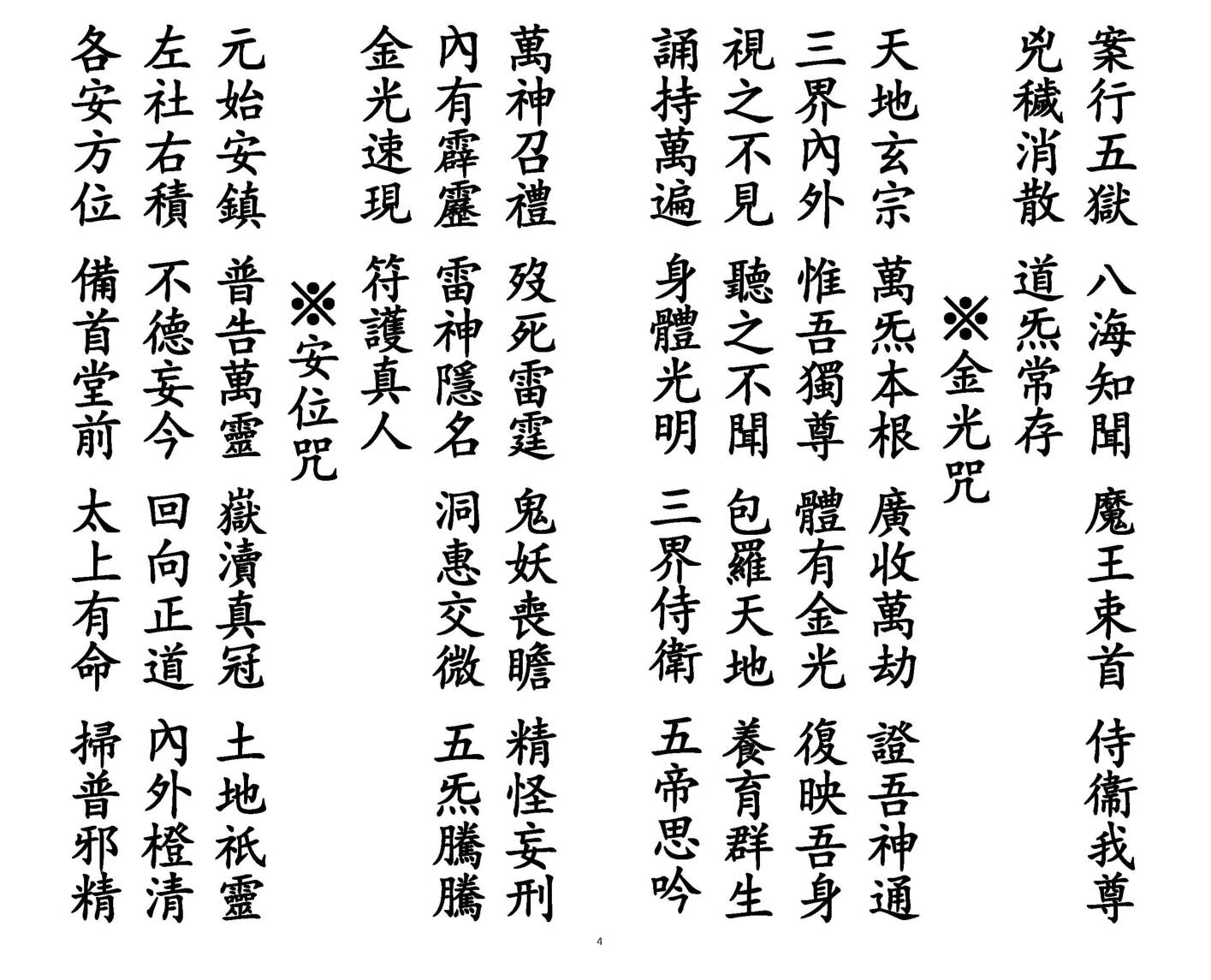 内容有:天地咒、金光咒、安位咒、净心咒、净身咒、净口咒、化财咒等等。