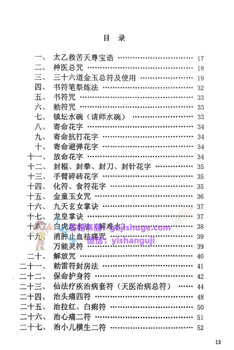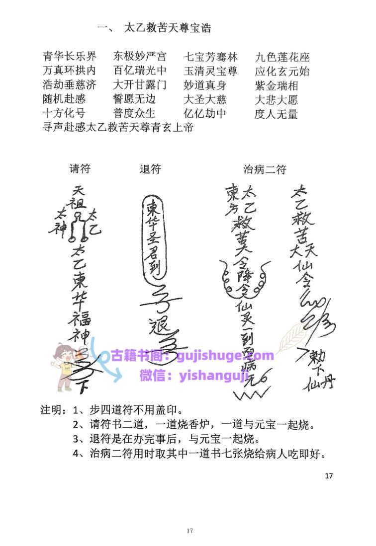 简介:《茅山仙法法本》仙教,规范整理版,道家秘法相关书籍,一、太乙救苦天尊宝浩 …… 17