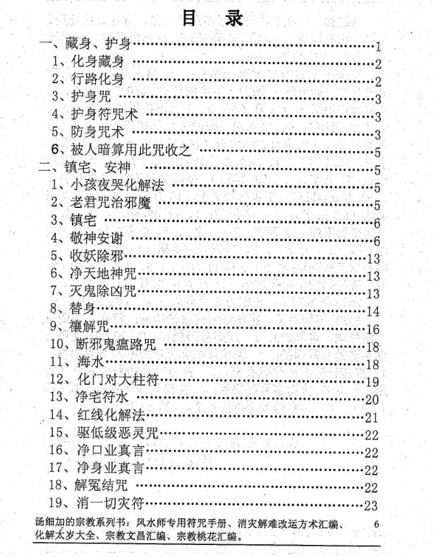 七、符道 :一)、符的功能;二)、符的分类;三)、符的功能分析;四)、画符的十戒八忌 ;五)、画符的程序 。
