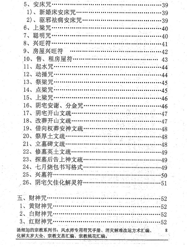 此内部资料书中吉祥如意之类祝词、文疏照用即可,本作者还有几十种文疏和烧包,可批发零购(见附表)。