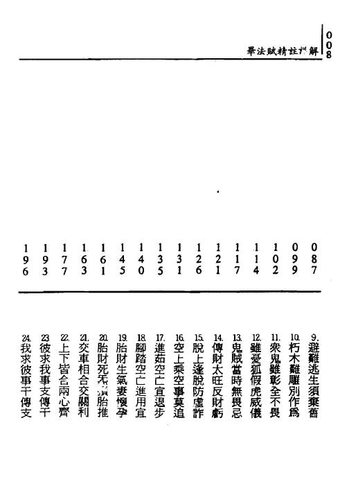 (毕法赋)的主文仅七言百句七百字,却字字珠玑。它的注释则充分列举各种课象的可能变化,因此扮演了上述研习三阶段的传承角色,为内行人所喜爱,其实它也涵盖第一阶段各因之的描述,而课格例释也与(六壬大全钤)相通,事实上只要读通(毕法赋),就可尽窥六壬术的堂奥。
