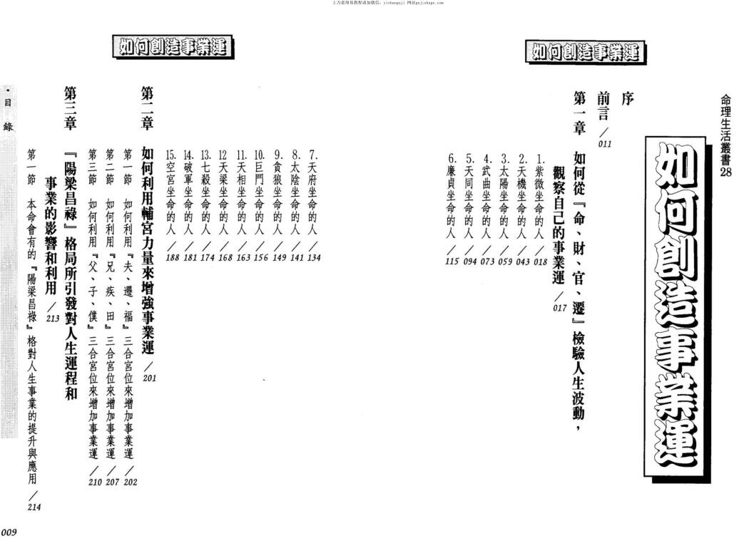 这本‘如何创造事业运’修订版,是将原先的‘如何创造事业运’再做重点的修正。每个成年人最关心的就是事业运,从命理的角度来看,事业也与家庭与人生幸福有关係,与婚姻子女有关係,因此事业与人生幸福有关。法云居士以紫微命理的方式,帮助你检人生,找出顺畅的事业运道路,完成创造事业运的伟大工程。
