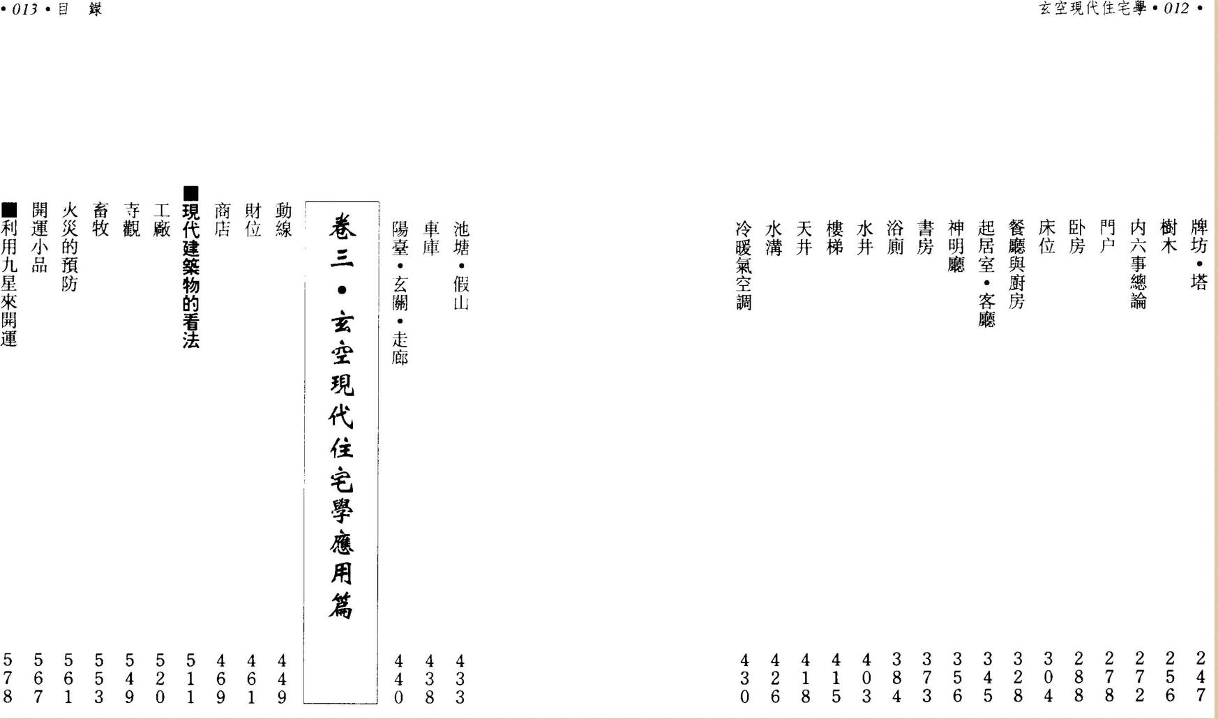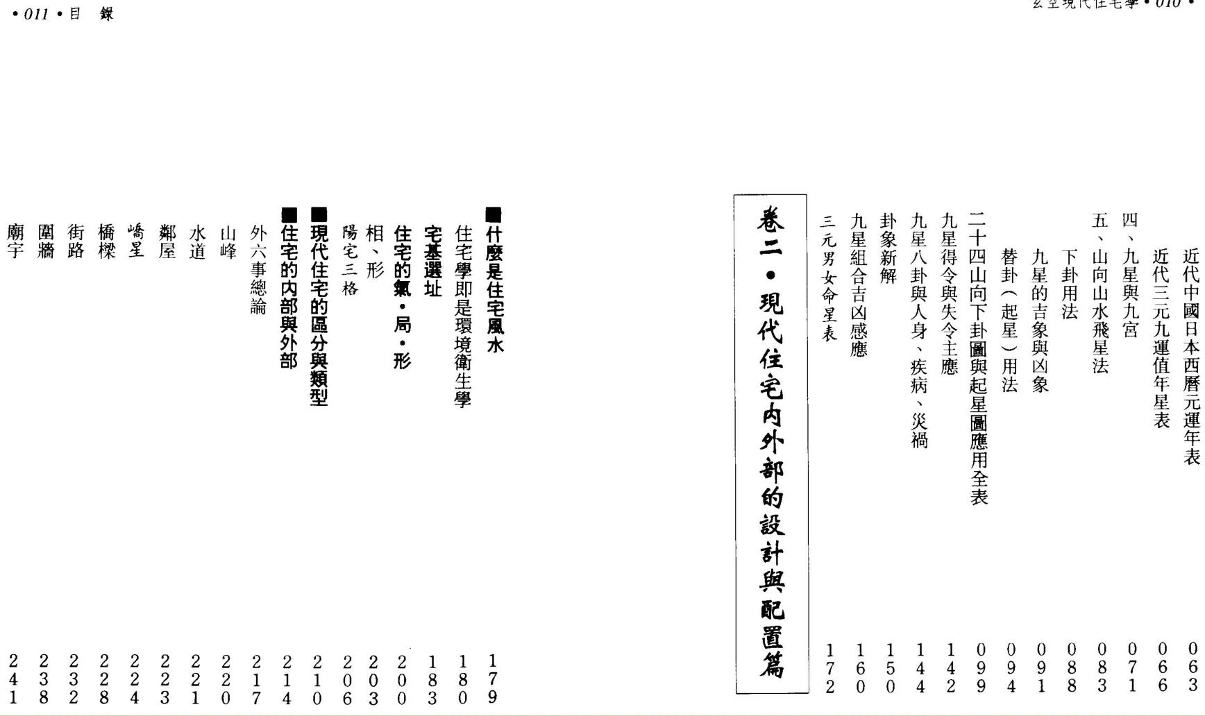 本书尝试尽量将中国古代博大精深的宅法,予以精简化、系统化,配合现代建筑理念,形理并重,以断验最准的玄空学为骨架,兼采其他学派在实验上有准确性的法则,来介绍适合现代需要的住宅学理。天下间的事物,不是全美无缺的。住宅也是一样,不可能全美无缺。在现代研究住宅学,不是在寻找一幢“零缺点”的富贵住宅,而是在探寻如何改善缺点的方法,运用人的智慧、开发人的潜能来调整不利的住宅因素,进而克服住宅的不利影响。这样,人才活得有尊严,人的存在才有意义,也是研究现代住宅学最可贵的哲理。 这本书的初稿完成于一九八五年夏天,这七年多来,我不曾间断的考证、实验、收集相关资料,予以补充、改写,并引用许多很不错的日本屋相家的见解,希望能达到理想的地步。相信是现今市面上唯一以现代语言解说玄空阳宅学、最具现代建筑理念的一本阳宅书籍,但愿抛砖引玉,至盼有心人士,能共同来为人类生活的幸福而努力。