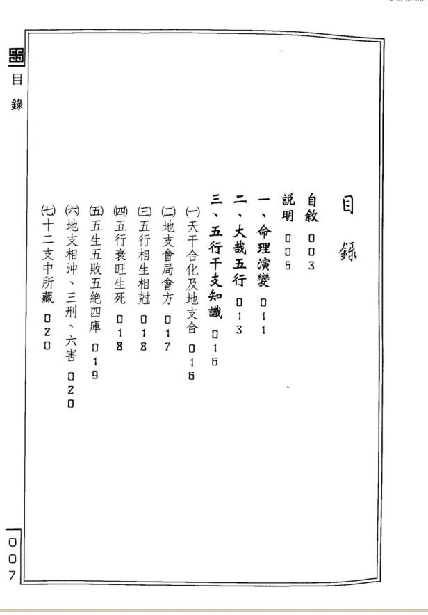 越二年,奉命退伍,此后时日更专心於命学者,已念六年也。最初十年,在书本文字上追求,较难通达,因前人所作书籍,格用等不甚明瞭,使人难以通达。后乃以古人原命,及今人之八字问清情形,细心研究,由是而得知格用之的确取法。进而知真假衰旺及变化之真机,更进而对六亲成败得失等,瞭如明镜。