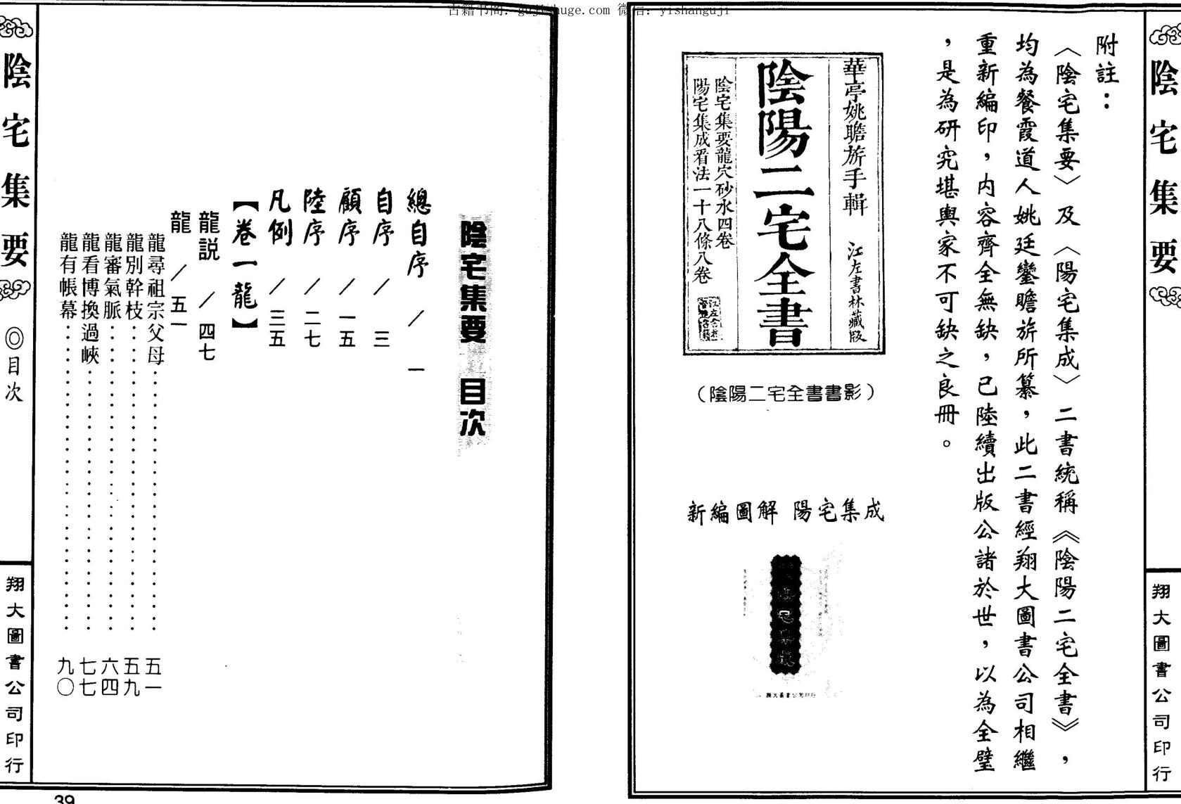 《陽宅集成》及《陰宅集要》,總稱為《陰陽二宅全書》均為清代餐霞道人所纂,前者本公司早已問世,後者坊間雖有,但因其內容殘缺,版本更殘不忍睹,本公司經過一段很長時間及人力,將其一切缺憾均一一細心編排及校刊,迎刃而解。