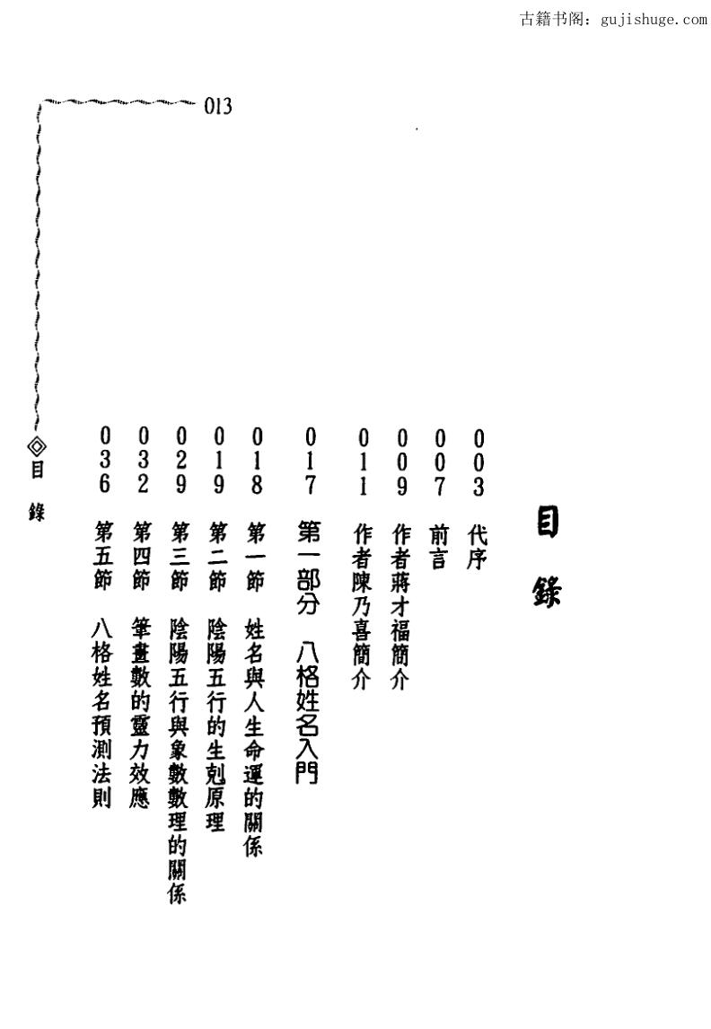 古籍书阁 » 蒋才福,陈乃喜,八格姓名预测精华