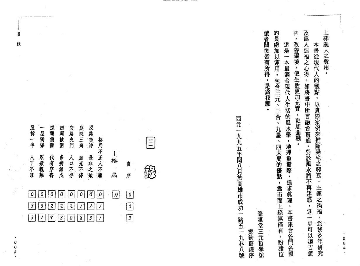 这是一本适合现代人生活的风水学,本书汇集各门派的长处加以运用,包含三元、三合、九星、四大局的优点,为市面上绝无仅有,盼诸位各有所得。台湾高雄-登雅堂三元哲学馆。
