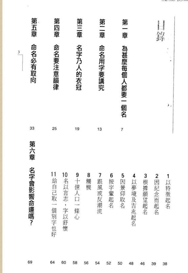 本书是作者数十年从事命名工作的心得, 论述名字的韵律、取义和禁忌外,尤重教授配合八字喜忌之五行命名法。