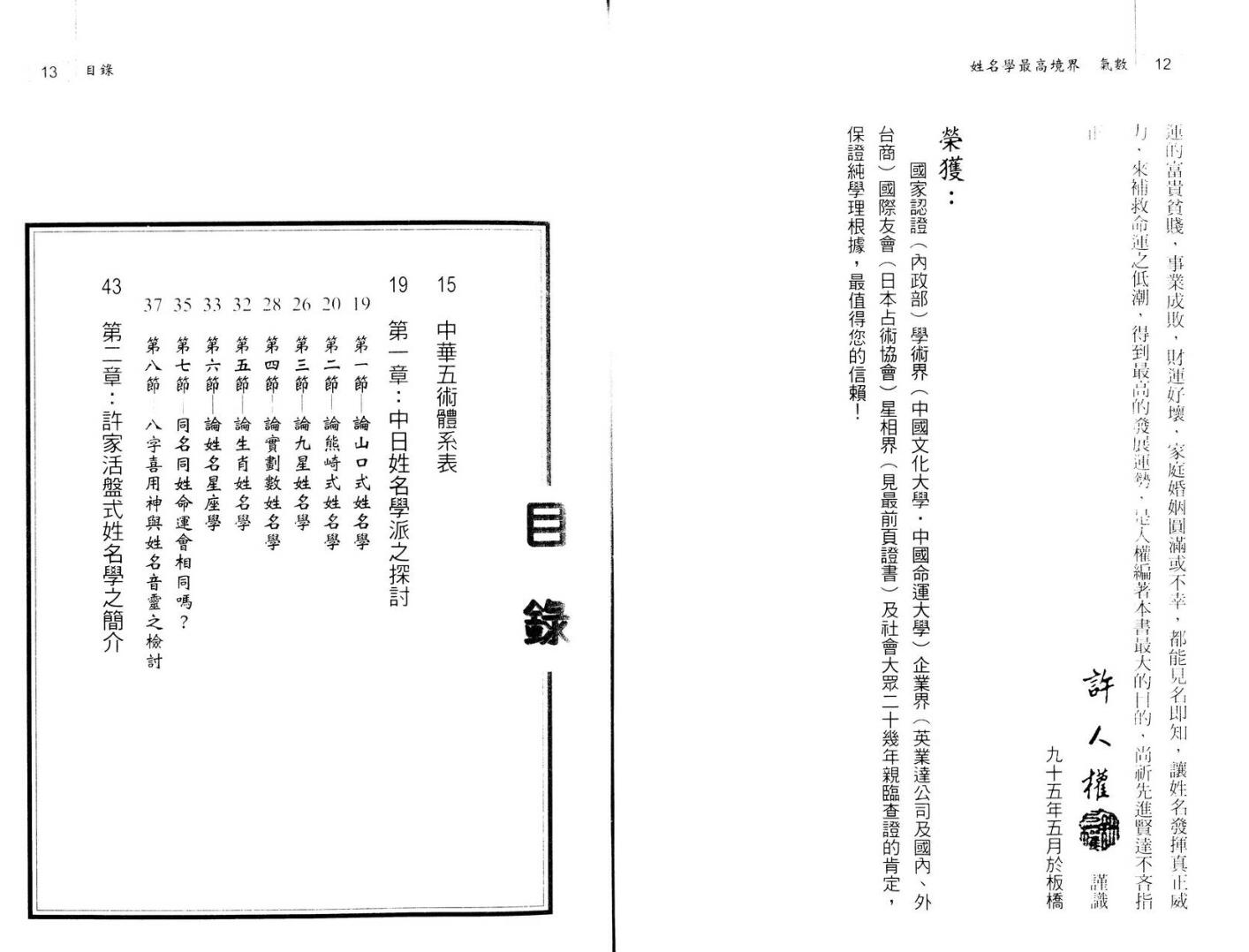许人权《姓名学最高境界气数》