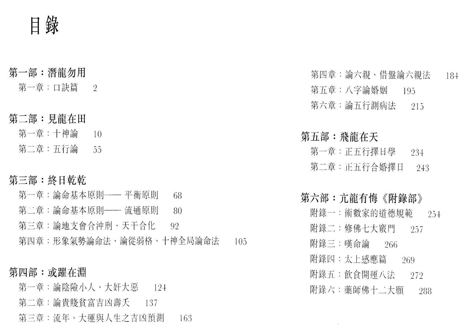 书内除特别指出学习命理的五个误区:死背口诀、格局、神煞、 十二长生、纳音五行,提醒初学者应尽量避免误入外,更加正本清 源地道出命理本来就是五行生克制生化之理,万法归一。附录部分, 更道出命学上的盲点,乃学习术数者必须细味。