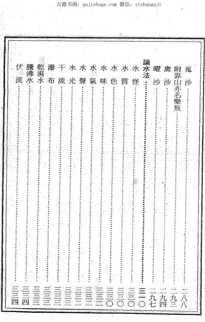 “直出、反跳、毒水”。文中详细描述了 “九曲水”“天池水”“瀑布水”“毒水”(如黑水、血沫水)等形态:“九曲水朝堂” 主大贵,“天池水清澈”