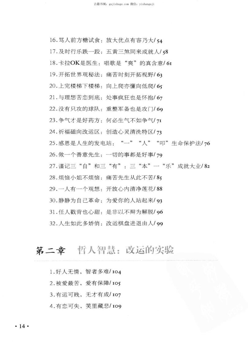 写“好”字二十遍,当天就会行好运?唱卡拉OK可以改变霉运?转个方位睡觉,就能改变运气?……李居明说:“人失运需要改运,人伤心更需要改‘心’。改变自己的心念想法,好运自然慢慢到来。”这是改运学上的重要理念,也是这本书所要说的“改心转运”术。本书属于李居明的“心转运自来系列”,侧重改运心法和心灵智慧的讲述,贴近人性与灵魂的感悟,是李居明的第一套改运励志书。
