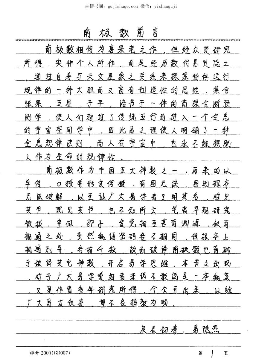 古籍书阁 » 易隐燕《七政五星南极秘数》