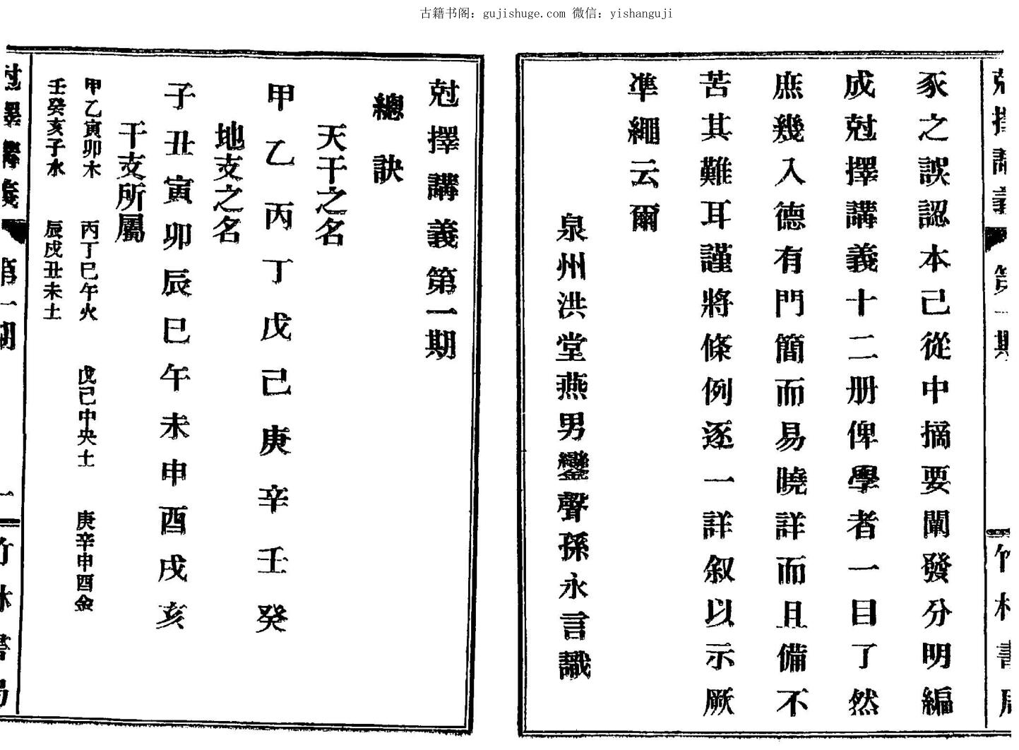 窃惟神煞无限必须别其舛伪吉凶有凭最要勘支底蕴切念先祖贯通历法精奥克择手着择日书册甚多以便后人观览但其意深其词广诸例浩繁后学初不无难于观阅余不非敢妄自增删特恐钝蒙寡识致鱼鲁亥豕之误认本已从中搞要阐发分明编成克择讲义十二册仟学者一目了然庶几入德有门简而易晓详而且备不若其难耳谨将条例逐一详叙以示厥准绳云尔 泉州洪堂燕男銮