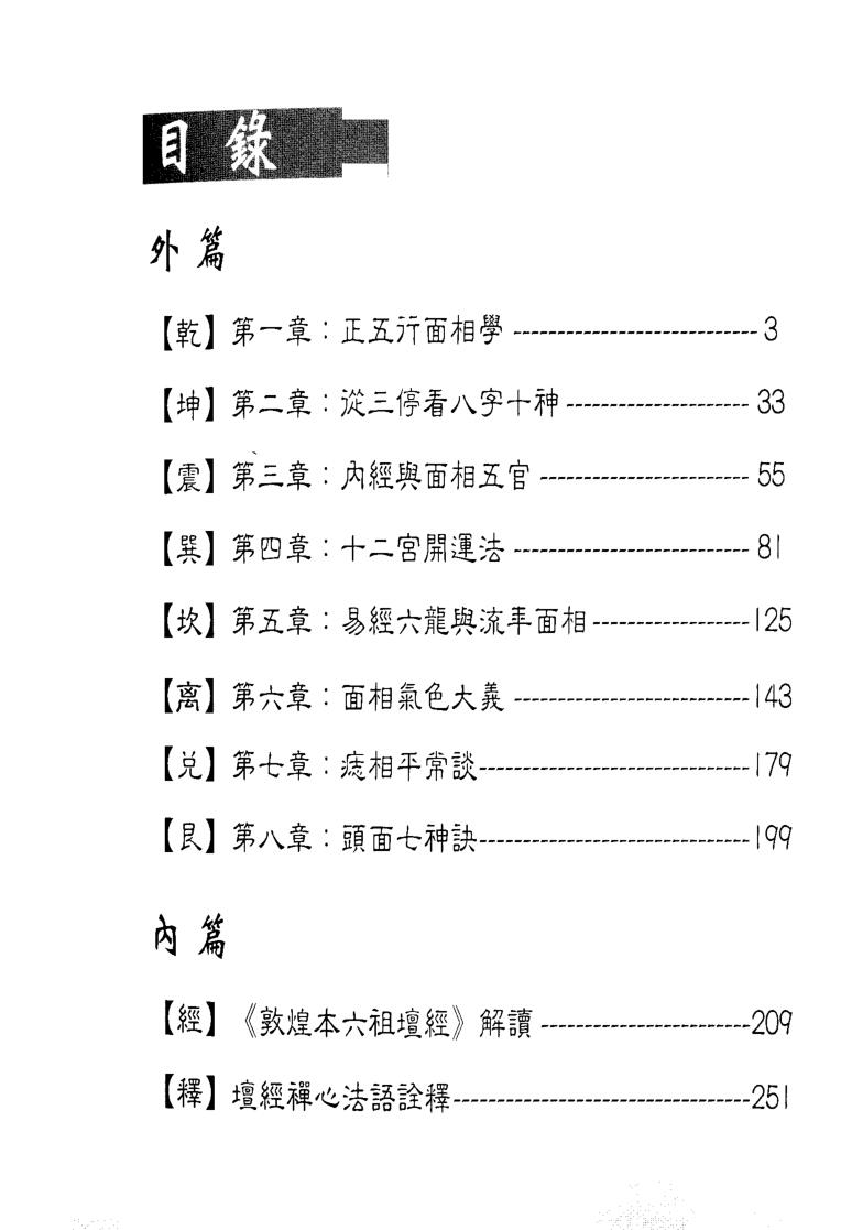 在本书中,觉慧居士把「面相学」跟「八字十神」、「易经六龙」、中医学理论、道家命功等结合起来,衍生新的理论模型,发展新的「面相学」知识,补充原有概念不足的地方。更把「相学」的复杂理论,配以《易经》的八卦,整理出一套新的「面相学」系统,是面相学的一大突破。