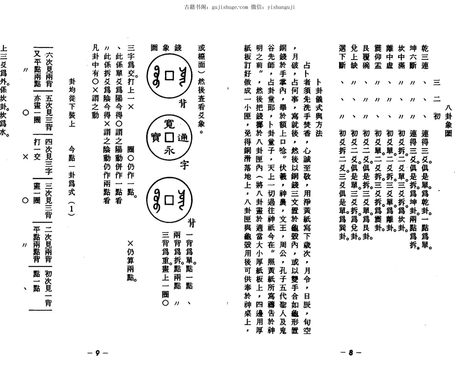 中国五术:山医命卜相,为我国固有之文化哲学,其中以占卜之法,能解人疑难,教人趋吉避凶之道,其例已不胜枚举,我国古代不论仕农工商皆采用之,并能应验不爽,据史载:三国时代蜀国军师诸葛孔明亦精于此道,如赤壁之战,孔明占卦卜出某日某夜东风起,后世才有孔明借东风之说,是夜蜀国利用东风之便,火烧曹操连环船,而破曹操百万大军于一夕之间,皆拜赐于诸葛孔明精通于占卦之道,余亦每于百忙中抽空为亲朋好友占卜解惑,尚能应验如神,又明朝国师刘伯温,扶助朱元章统一天下,常利用此道于出师行军破敌,无往不利,而近代政界人士占卜仕途是否顺利,竞选总部如何安排方位,工商农人士占卜工厂设立营利之情况,货物囤脱之时机,农作物丰收之季节,皆可利用占卜预知,然市面上一般占卜之书籍,解释太多深奥复杂难明,对于初学者常有未学先厌之感,余有鉴于此,特采用最简明之方法,用白话文详细解释,对占占发福生财,男女婚姻是否白头偕老,生男育女,求医贵人在何方?