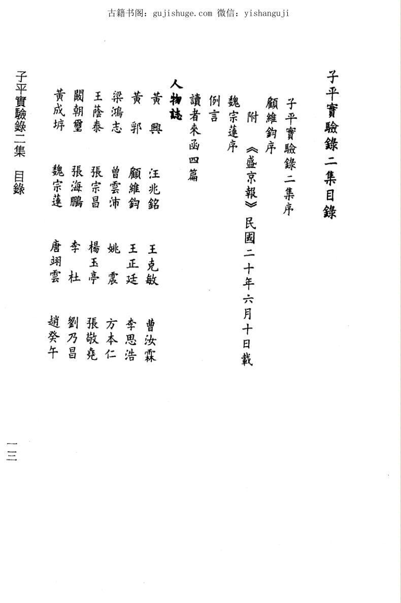 原书前有段段祺瑞、顾维钧及魏宗莲序共三篇,以及读者书信函件四篇,并有《盛京报》民国二十年六月十日和《哈尔滨公报》民国二十 年十月六日报道各一篇,详述作者命理神迹及著述缘由。收录民国名人 命造六十例,以东北人士居多。书中剖析吉凶,多有神验。