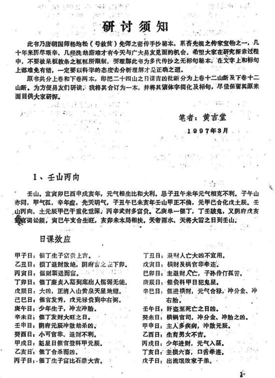 杨救贫 二十四山六十甲子日课吉凶批断