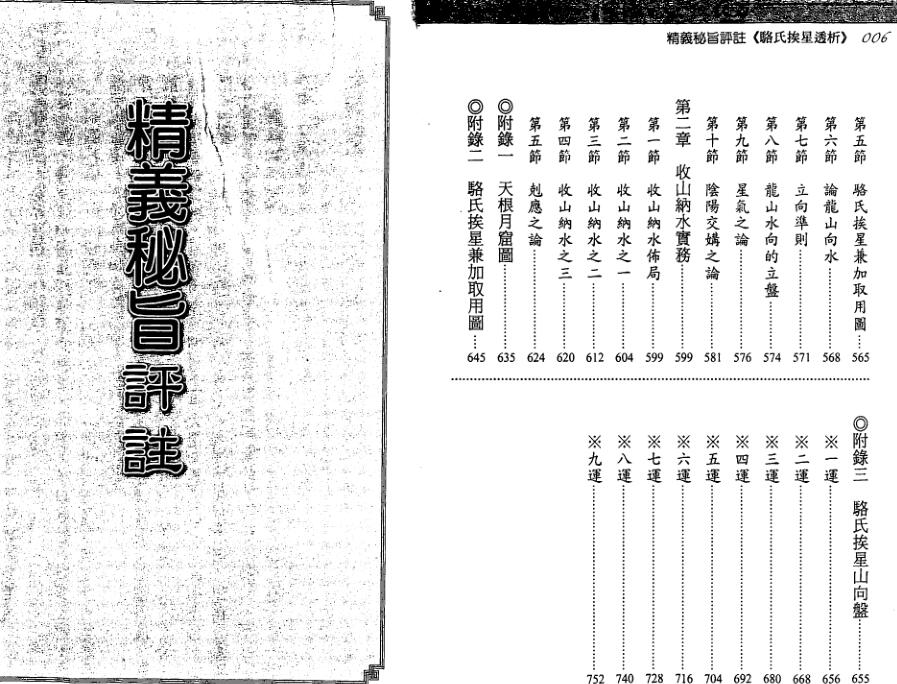 骆氏挨星之法源自〔精义秘旨〕一书,作者评注并更正其错谬,为让读者有一明确逻辑依循,特于卷末以〔骆氏挨星透析〕一篇为之导引,对首次涉猎骆氏挨星的读者更能得心应手,事半功倍。