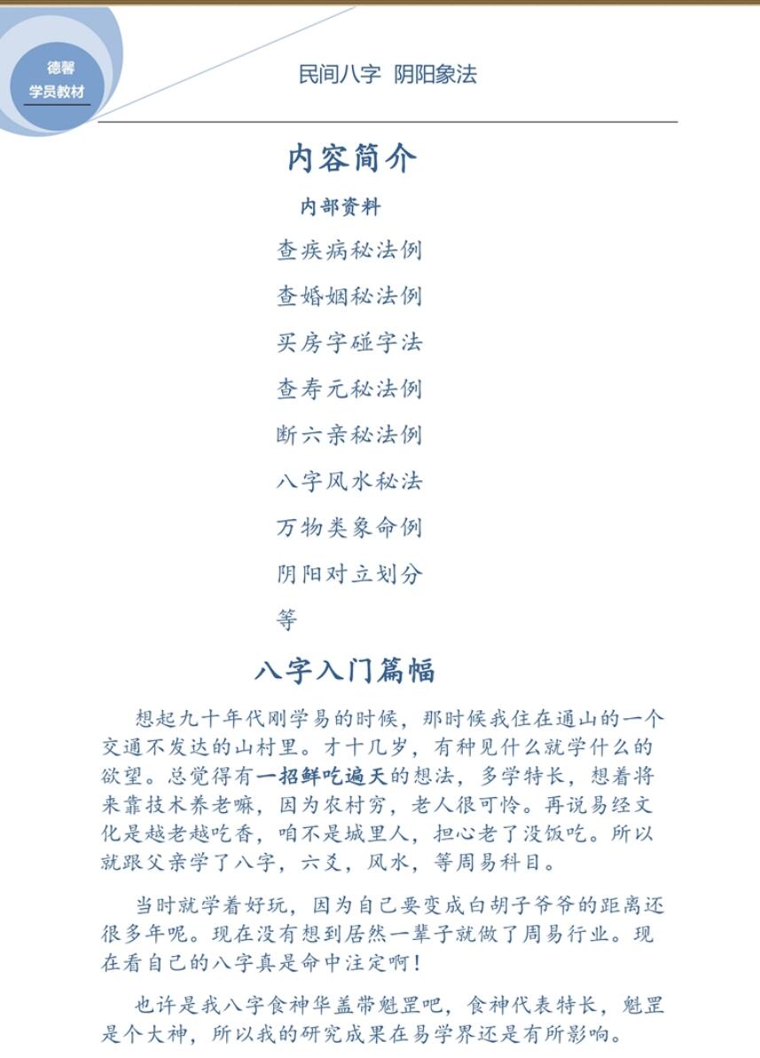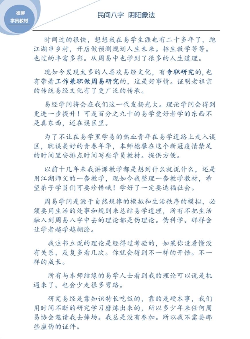 德馨-民间八字+阴阳象法《民间弟子班八字学员教本课例》