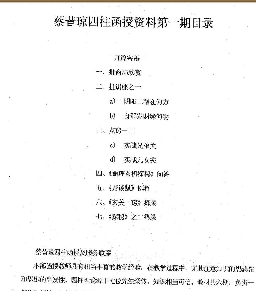 蔡昔琼《四柱八字函授资料》