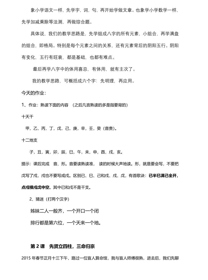 八字名家蔡昔琼的2019年命理大学一年级初级班教材!