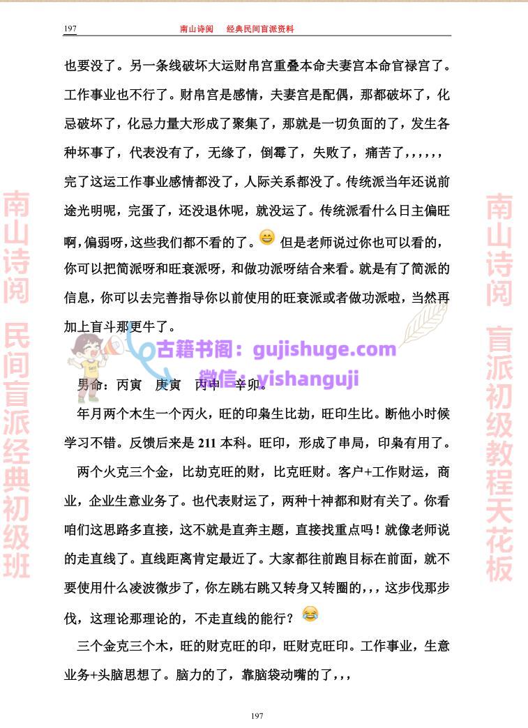 古籍书阁 » 南山诗阅 民间盲派经典初级班教程 PDF 495页