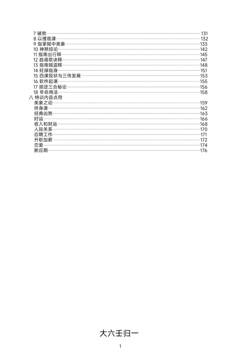 周易术数的基础是干支,研究干支最通彻的就是占卜人事之王“大六壬”。八字命理就是由大六壬演化而来,八字中的很多术语技法都是来自大六壬。六壬正时起课就用四值或叫时空八字,结合年命和类神分类占之无不应验,学会大六壬来人不用问。所有的术数如六爻、奇门、梅花等都要用到四值时空八字,而对这个研究的最彻底全面的就是大六壬。研究大六壬,对其他的术数爱好者来说锦上添花如虎添翼。大六壬不仅重视五行生克,更重视干支组合类象,而这些类象其实在其他的术数中一样神验。很多高手私下学习大六壬,而不与外人说,把六壬变成自己的秘密武器。六壬传播之所以没有八字六爻广泛,一方面有些人秘而不宣,另一方面六壬典籍众多,课体复杂,断法纷纭,很多人学习了几年,还不知如何去断。而本资料《大六壬归一》是老师把自己研究多年的心得经验技法诀窍和盘托出写成讲义供弟子学习。使繁杂变得简单,用一种思路,一种技法,主次分明,游刃六壬庞杂体系而有余,是茫茫迷雾中的一盏明灯。一书在手,少走十年弯路,此言不虚。