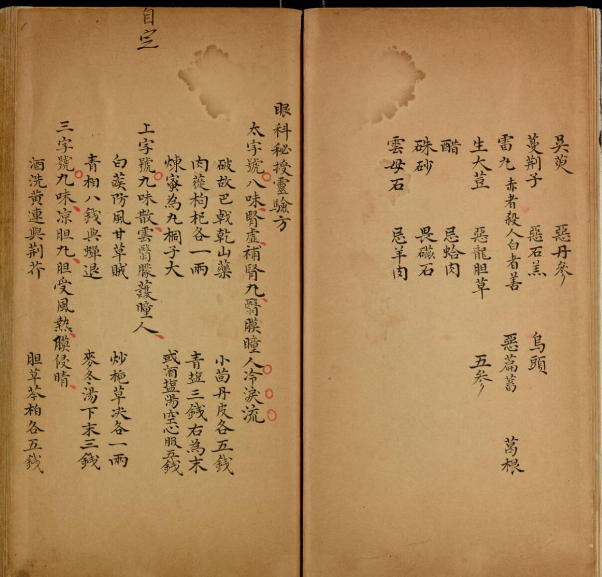 《眼科秘授灵验方》