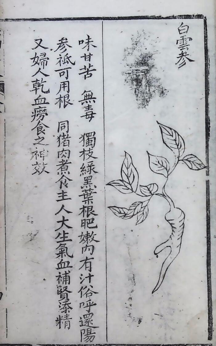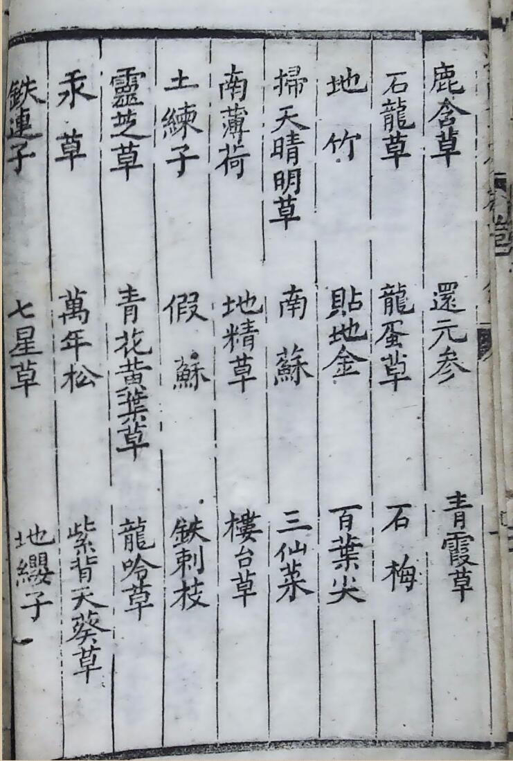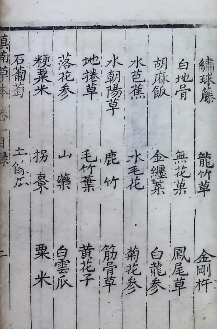内容有:卷一(人参、白云参、如意草、石胆草、黄毛金丝草、剑草、金钱草、鹿含草、还元参、石龙草、地竹等);卷二(梨、桃、杏、甜石榴、白菓、葡萄、红梅、栗子、枇杷、李子、桑葚子、苦瓜、茄子、甜瓜等);卷三(佛手柑、珍珠草、苦连翘、土黄连、松橄榄、五加皮、秋木瓜、金樱子、破钱草等);卷四(四诊总论、脈诀歌、左手脈部图说、右手脈部图说、左寸心脈浮主病论、左寸心脉沉论、左关肝脉沉论等);卷五(中暑合症论、中暑附方、感寒合症论、伤寒合症论、伤风附方、便血附方、大便血、脱肛附方)等等。