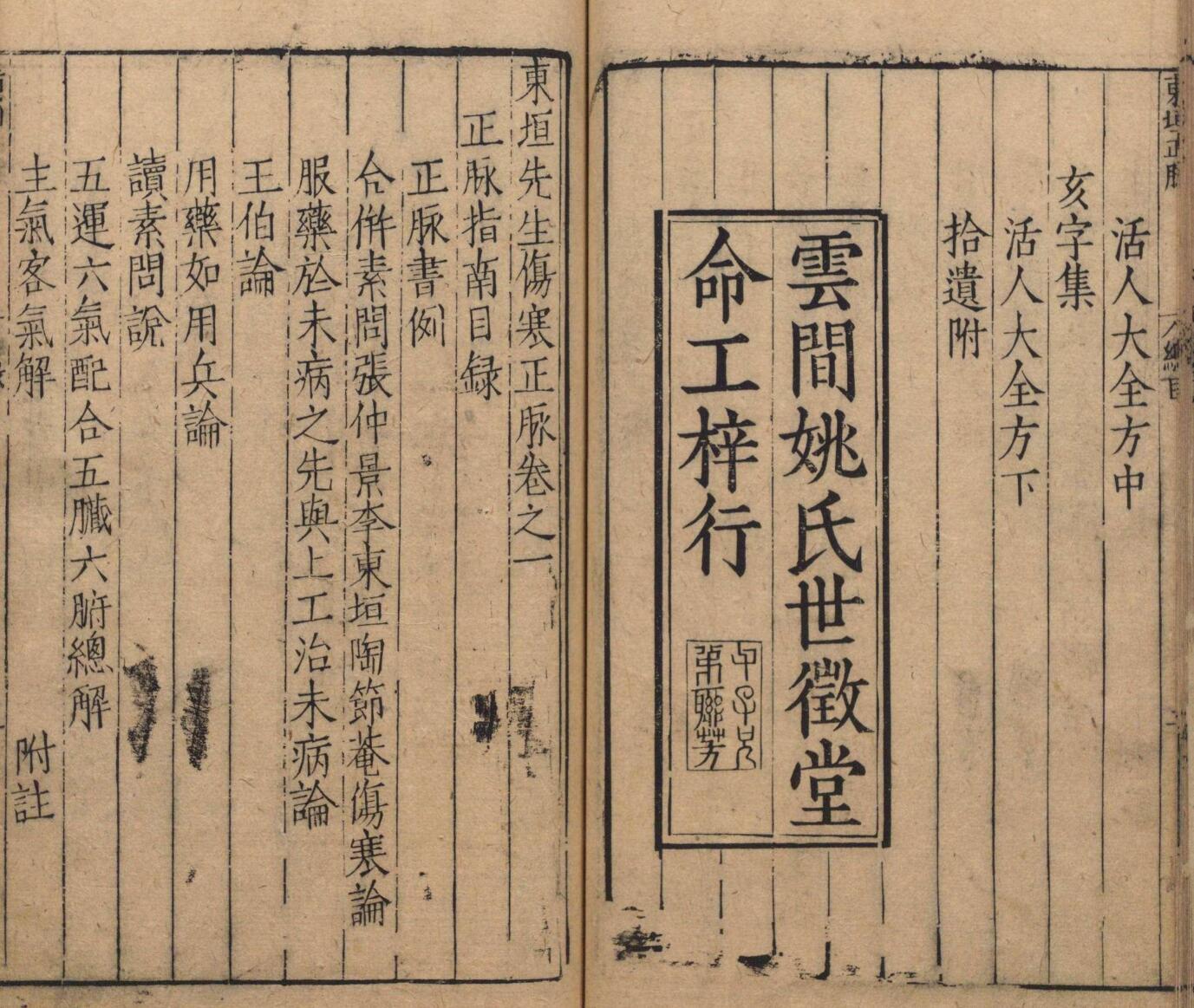 东垣先生伤寒正脉 王执中 姚臣 明万历8年