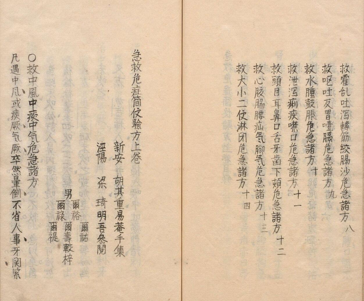 《急救危症简便验方》是清代胡其重编写的一本方书类中医文献,二卷,成书于清康熙十一年(1672)。