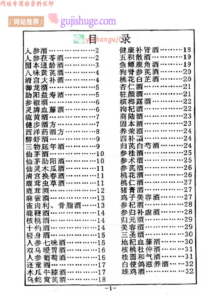 内容有:人参酒,清宫大补酒,御龙酒,助阳益寿酒,健步酒,仙茅助阳酒,清宫换春酒,十仙酒,还童酒,健康补肾酒,驻颜酒,枸杞酒,固本酒,鸡子美容酒,雄鸡酒等。