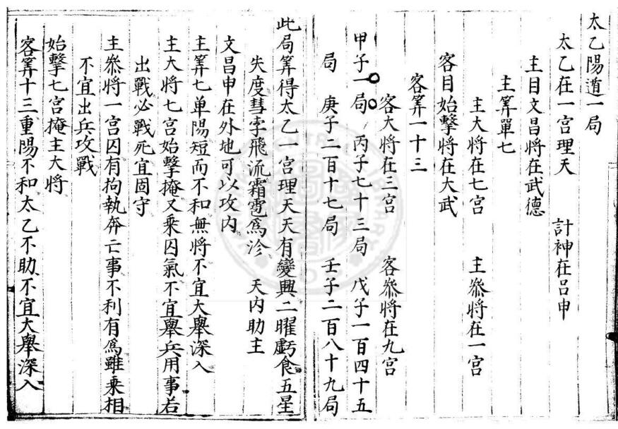 太乙以一为太极生二目(主、客目),二目生主客大小客与计神共八将。太乙乃天地之神,其星在太乙之前,统十六神而知风雨、水旱、兵革之事。昔黄帝与蚩尤大战,适逢大雾,以雾书昏风后相,造指南车克之,是以取太乙之法,传至今三千余年,例目以为术数。外阅龙图,内演龟文,凡天地之所以设君臣父子,之所以立阴阳,太乙了然演数则理昭著,太乙周行流运六十四卦,贵神入门十精之星,使经纬错缩表理,集为一书。延续至今三千余年不衰,为当今社会预测、决断,提供了宝贵依据。