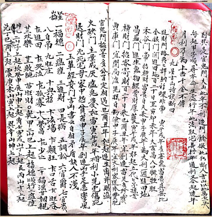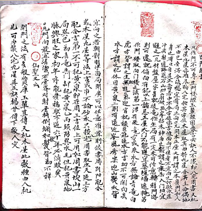 清代手抄秘本《杨曾二仙师九星造门经》一册,内容包含九星吉凶诗诀断,玉辇经安门吉凶,天机木星安门法廖禹仙作,天机木星安活法图,造门总论,杨公放水法,相主造葬同樞,真禄真马真贵人例定局,天河转运尊帝二星定局,通天窍天机二四山依杨公真诀,十二倒杖,天星名目㨗记诗,袁天罡开门经,等等诸多内容!
