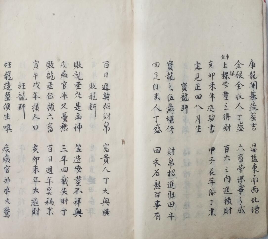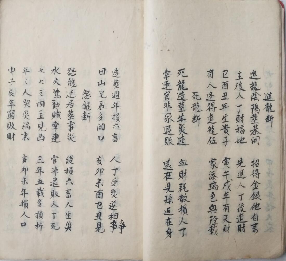 全书内容:钱龙断、库龙断、八星断、论总砂、八卦歌决、经度歌诀、禽星尅应、五行风水尽录其中,书法一流,此书最后5~6页有老损伤