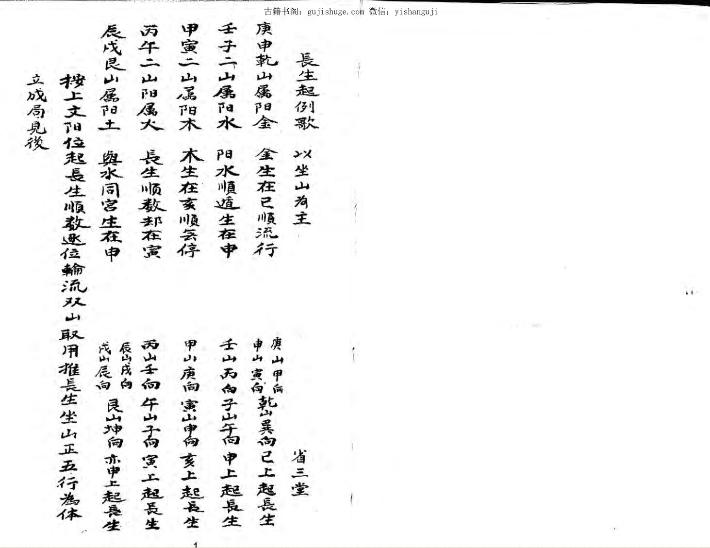 长生起例歌、阴位长生歌、长生阴阳遁局立成表、16章长生水法歌、长生配九星水法、地支水法补遗、另加总断曰俗语歌、六甲克应、八门克应、九星克应、三奇克应、十干克应、恋头真正秘传歌诀、即刘伯温的“披肝露胆经”右旋龙形体、天井放水一法、开门放水法、金镜歌、房份断、双双起发验捷诀、消水出煞总诀、详卦爻换象注解论、杨筠松仙师诀、阴阳配合诀、三元合五行诀(论阳宅方面的)