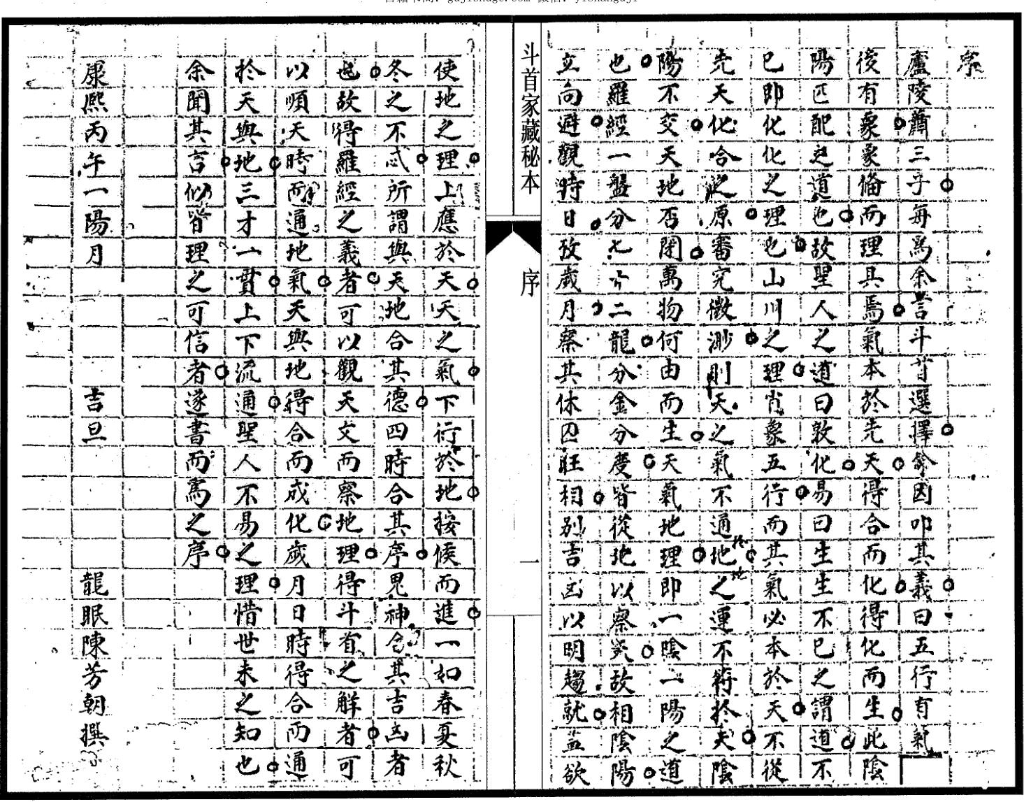 经典秘本:萧洪治《斗首家藏秘本》上下册+外篇,后学郭步青照轩氏校正集抄,康熙丙午一阳月吉旦,龙眠陈芳朝撰 序,龙眠弟张英拜撰 叙。