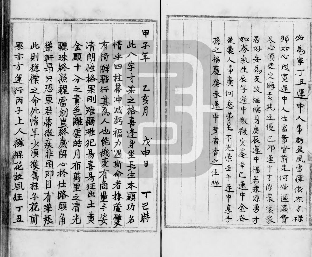 《子平遗书》又名《沙涤命经》,明抄本,现存 413 卷,是中国国家图书馆馆藏子平珍籍。《子平遗书》413 卷,分六十花甲年,书中详列八字四柱的所有组合,每一时辰有一命批断语,堪称是江湖命师的压箱宝。其取格仍是尊重《三命通会》,主要以月支取格,不重视天透地藏。只批大运,不讲流年。文辞优雅。其中最珍贵莫过于书中引用明朝或以前的珍贵断语。